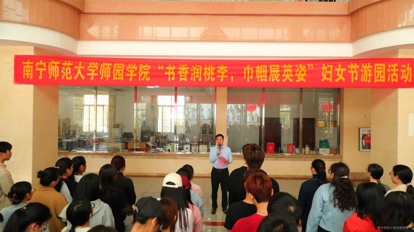 梁秋副书记为本次活动致辞并宣布2026年“书香润桃李,巾帼展英姿”游园活动正式开始。梁秋副书记在致辞中代表学校党政领导班子向广大女教职工致以节日问候和美好祝福并充分肯定了女教职工在防城港新校区建设、教学提质、管理优化、服务升级等工作成效中展现的智慧汗水与担当奉献。2026年是“十五五”规划开局之年,也是学校推进转设、拓展办学空间的攻坚之年,为激励广大师生员工以实际行动彰显责任与担当,鼓舞广大女教职工持续发挥“半边天”作用,梁秋副书记提出三点希望。一是筑牢信仰之基,以巾帼之志锚定发展方向。二是勇担时代之责,以巾帼之力书写奋斗华章。三是涵养师者之心,以巾帼之美厚植教育情怀。