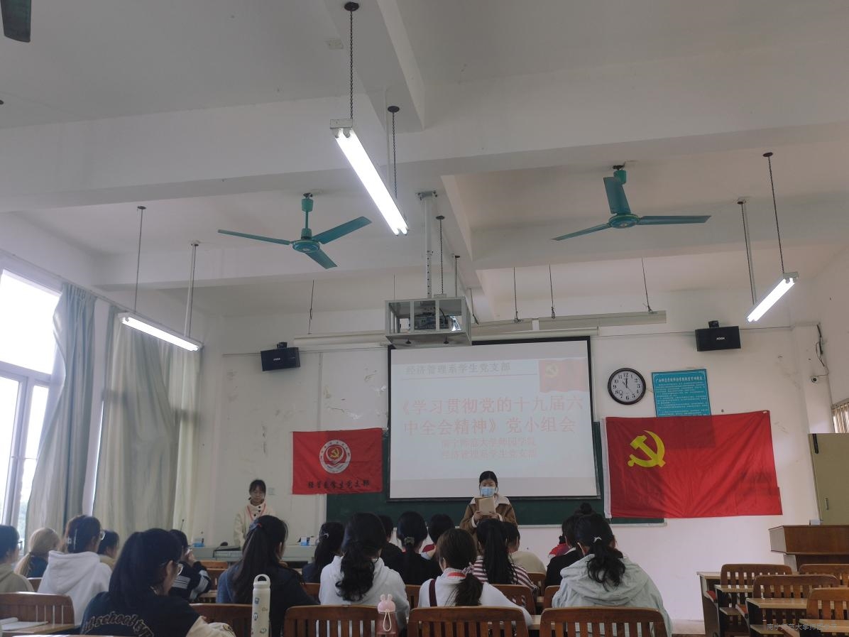 11月23日中午,经管系学生党支部在教学楼4-203教室召开专题组织生活会,专题党的十九届六中全会精神。经管系学生党支部书记朱佳宁及全体在校党员参加会议。