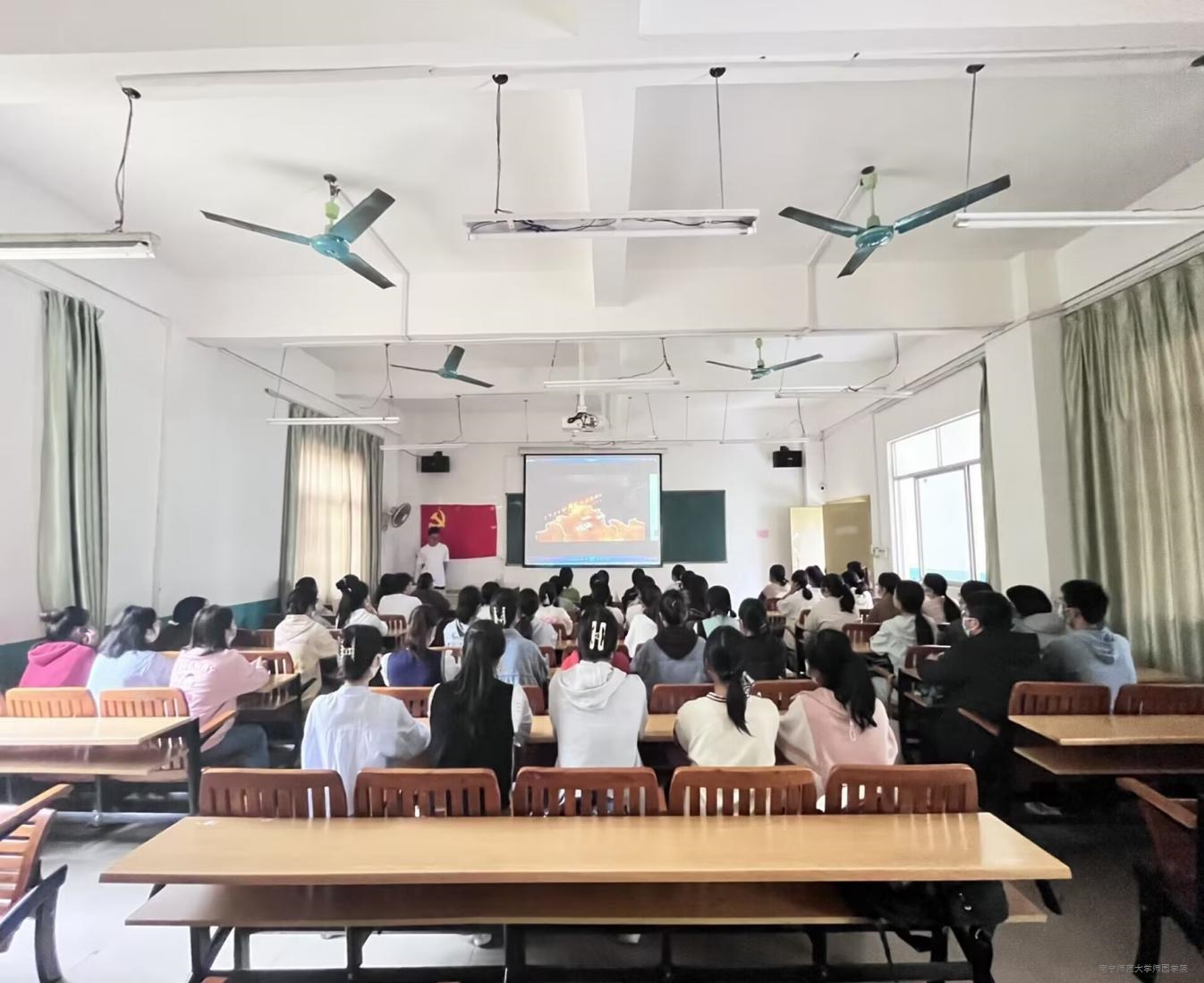 11月17日中午,外语系学生党支部在教学楼4-102教室召开专题学习交流会,聆听红色故事,感受红色文化,追忆红色记忆,弘扬红色精神,厚植爱党爱国情感。外语系学生党支部全体党员同志参加活动。