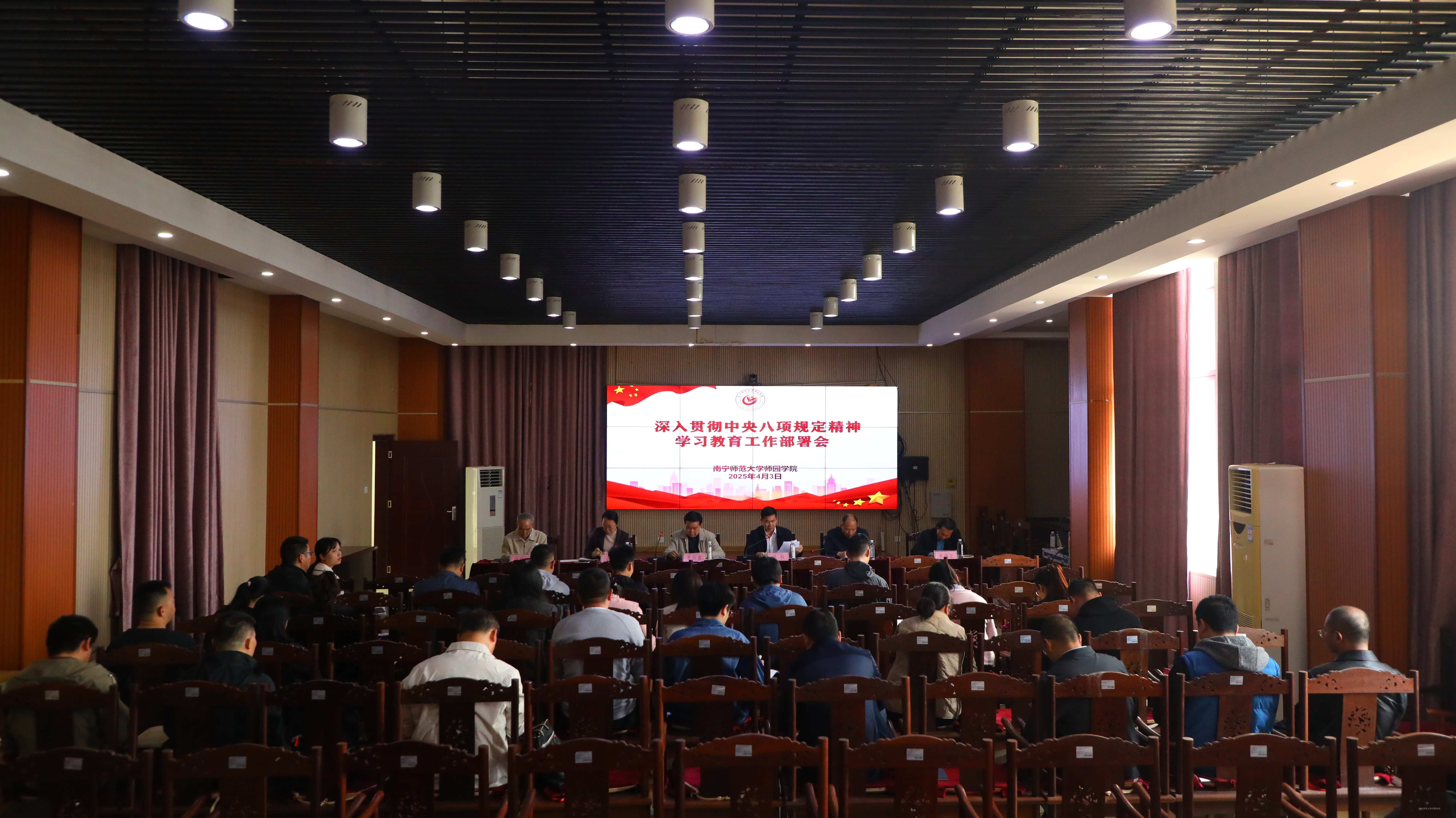 4月3日上午,我院在行政综合12楼第三报告厅召开深入贯彻中央八项规定精神学习教育工作部署会。学院党委副书记梁秋(主持党委工作),院长尹文嘉,党委副书记、常务副院长李剑喜,学院纪委书记、副院长庞俊、学院副院长李德正,学院教学总督导卢敏秋及全体中层干部、各部门负责人,各党总支、各直属党支部书记参加会议。会议由梁秋主持。