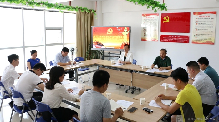 会上,梁春贤书记组织学习了党的十九大和十九届二中、三中全会、全国两会以及2018年全区教育系统全面从严治党工作视频会精神,深入分析了我院党建工作的存在问题,对下一步工作开展作出指示,并围绕我院进一步深化全面从严治党作领学发言。梁春贤书记指出,2018年是全面贯彻党的十九大精神的开局之年,也是全国教育系统党建质量年,进一步在新的时代背景下巩固党的领导、加强党的建设、推进全面从严治党是我院2018年的重大课题,也是必须推进落实的工作。他号召全体教师,要践行“四有”教师标准,坚持“四个相统一,做好学生的“四个引路人”;号召全体大学生,践行“四有青年”标准,树立与新时代主题同心同德的理想信念。