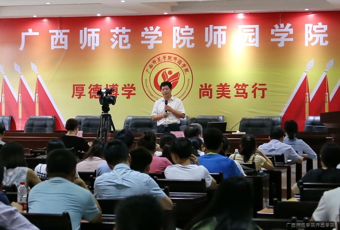 为进一步深入学习贯彻习近平总书记在北京大学师生座谈会和纪念马克思诞辰200周年大会上重要讲话精神,6月22日下午,我院“学习新思想,千万师生同上一堂课”讲座活动在图书馆6楼第一报告厅举行。广西师范学院马克思主义学院院长曾令辉教授应邀主讲。全体学院领导、中层干部、党总支委员、党支部委员、专任教师、行政兼课人员、辅导员及学生代表一同到场聆听了讲座。
